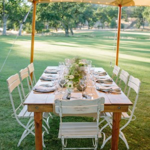 Our hand-crafted wood Farm Tables are made in-house and measure 8’x46″ seating up to 12 guests. Designed to be used bare or with a runner, these tables are perfect for the wine country wedding, family style meal, or coast-side dinner. We love them used as buffets, escort card tables, or for guest book signing. The tables have pine-plank tops stained to compliment both light and dark wood accents and their versatility continues to amaze us – fitting in both rustic and formal settings.