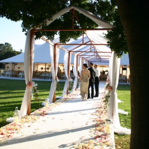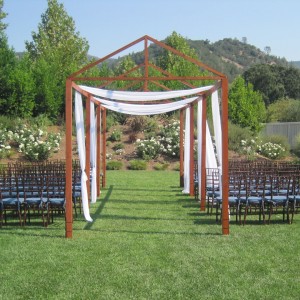 In addition to designing and constructing our furniture, we also enjoy collaborating with our clients to create custom fabrications. Looking for something special? Just ask! Some past project highlights include: *Custom “dock” ceremony aisle across the Beaulieu Garden fountain *66″ Round redwood dining tables * Wood structures over ceremony aisles or guest walkways *On-view kitchen with redwood slab counters and corrugated metal roof *New Zealand themed “sheep sheds” for food and beverage stations constructed with reclaimed wood and corrugated metal. *Mandap and stage.