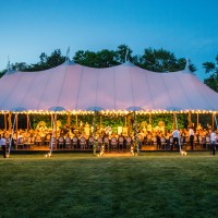 This sample diagram shows 298 guests seated at 16- 60" rounds and 17 farm tables with 2 bars, a stage and a dance floor.
