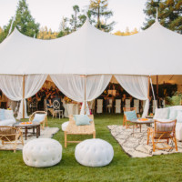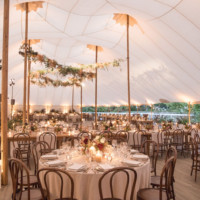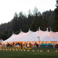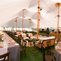 The 66′ x 126′ tent is the largest of the fleet with a total of 10 peaks. With an area of 7,861 square feet, this tent can accommodate up to 524 guests seated. With room for band and dancing, the 66′ x 126′ tent will comfortably seat 425. Please note seating capacities vary as event space requirements differ for each event.